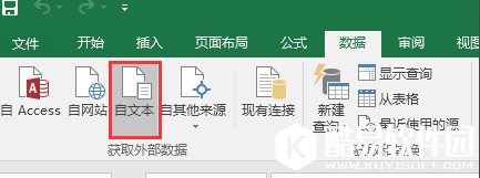 新建一个空白的Excel文件,打开它,点击菜单栏的数据——自文本,