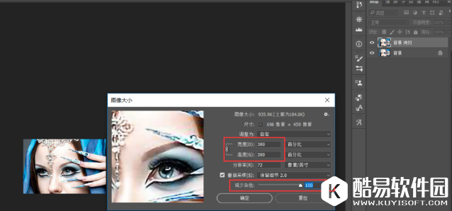 点击菜单栏的图像——图像大小(快捷键alt+ctrl+I),弹出对话框,调整尺寸大小,