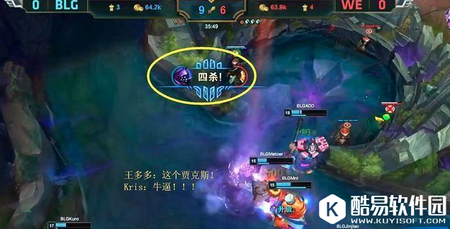在WE和BLG的对战中,大舅子使用的是寒冰射手,在保护下打算推塔一波对面。第二局比赛中,Kris在Mystic寒冰推塔的时候又说道:“寒冰点塔快得一……”,此时王多多救场道:“一塌糊涂!”