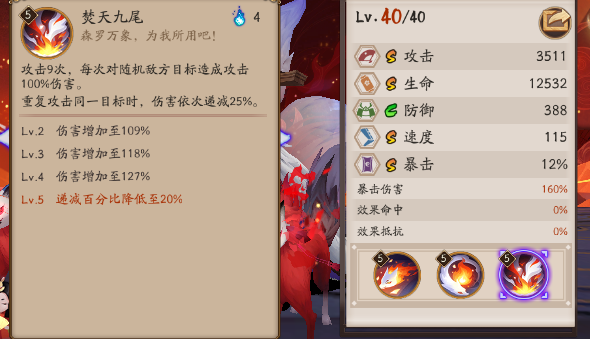 玉藻前大招,三个技能这么看下来,大舅真是朴素得让人感到,好久没见过这么朴素不需要费脑子理解,也不用任何额外机制说明的式神了!甚至又是一个四火技能。 玉藻前可以进行9随机攻击,每次造成127%的伤害,所以闹了半天原来你是烬天弈藻前? 当然,如此高倍率的攻击下,玉藻前每次攻击重复目标时,会逐次递减20%的伤害。 就冲随机攻击这点,大舅妈肯定是和斗技无缘了。但是但是如此爆炸的数值面板,肯定是能挖土的! 9段伤害。更是能稳定触发一次歌姬,并且因为动画速度比大舅本体还快,目前在特邀服,已经被搞出了21~23秒的魂土阵容。