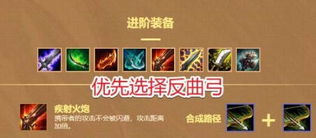 至于装备选择方面,最重要的还是反曲弓,主要输出是豹女,如果选择火炮、羊刀、无尽、饮血、神圣之剑等装备,前期会比较强,但后期输出有些乏力。如果选择电刀、离子火花、红Buff的话,后期输出也相当给力,但反曲弓需求比较大。 另外,前期可以用4海克斯或者豹女狼人的狂野效果过度,战斗力还是比较强悍的。另外豹女作为阵容最核心的英雄,是需要优先升级到三星的,但不要太急开始刷新,最好等打完石头人之后再开始找豹女。