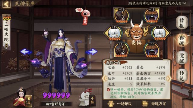 这个4000W伤害的阵容为三蛇双琴师,玩快速变蛇流,五个输出都是输出御魂的带法,双琴师输出招财 大蛇输出散件