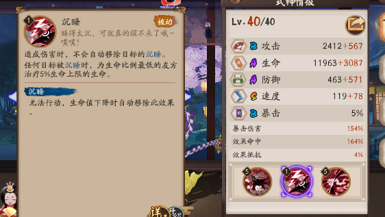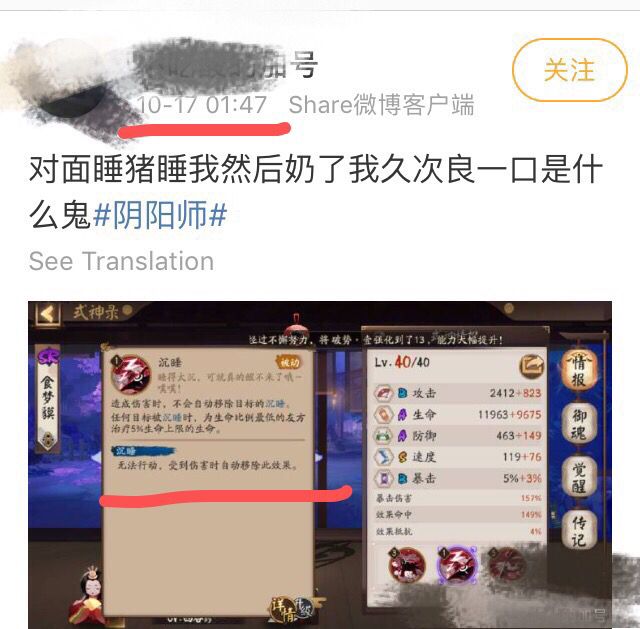 这个改动无论是上周还是这周两个服务器的更新公告可是都没有提及的!策划以为悄悄改了就没有发现了,为了强推酒吞,策划竟然直接悄悄咪咪削弱猪,新的大IP联动又谈好了吗? 既然睡眠现在的效果为失去生命就会打醒,OK我们来试试游戏中第一个有这个机制的式神薰,也是失去效果。
