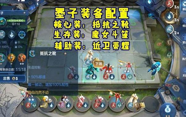 在装备选择上,小编的非主流主堆墨子和周瑜这2位英雄,周瑜堆法术伤害装这是毋庸置疑的,那么墨子应该选用什么装备呢?墨子是近战法师,戏虫给墨子配置的是抵抗之靴、近卫荣耀和魔女斗篷,它们分别起着免疫控制、增加双防和高额生命法防的作用。 这样的装备配置可以增加墨子的生存力,最终目的就是为了能有效控住对手,实践证明戏虫的操作是非常合理的,对手也有墨子,并且在对战中总是能先一步释放控制技能,正常情况下我们对于这种法控是非常头疼的,但是有了抵抗之靴,戏虫阵容里的墨子就能无视控制做到后发制人,另外像戏虫这样精心配置的墨子真的很耐打,经常能坚持到最后而不死。 阵型布置