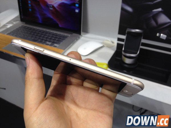 因乐甚至已经按这个尺寸设计了金属保护壳。从模具能感受到的是尺寸和重量,相比iPhone 5s,iPhone 6我起来更圆润,同时也更薄。 虽然机模给刷成了土豪金的颜色,但这是不能体验到iPhone应有的金属质感的。 最典型的变化,就是电源键移到了机身的右侧。