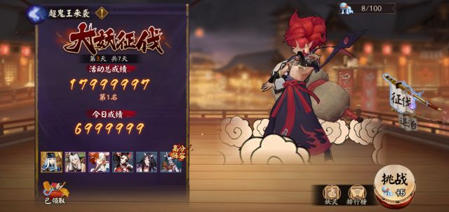 玩法也是一致的,杀死boss就算完事,前六天人均打满,难度逐渐递增,最后一天给boss拉个无法打满的血量,然后拼书翁的质量,关于本次超鬼王征伐第三天的打法, 下面一起来和小编看看有什么比较比较低配的阵容吧。