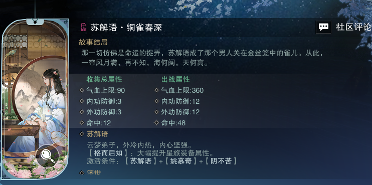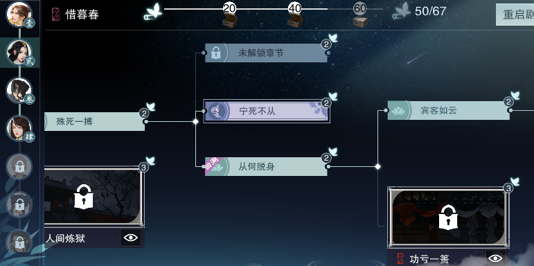 另外本条线一共有八个结局,除了给卡片的四个,还包括泣涕涟涟后选择不嫁然后全家流放。带了丫鬟去见苏嬷嬷后选择不嫁,在家庙终老。 以及杀人后还没出逃就被发现直接赚钱和反抗失败被反杀的结局。 |