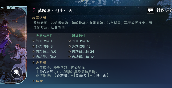 一梦江湖苏解语浮生星阵的剧情线中一共有四种结局,其中前两个的人间炼狱是最容易达成的,只要选择出嫁(必须出嫁不然剧情进行不下去)后面对胁迫时选择屈从就好了。 至于功亏一篑即出逃失败死亡的结局,需要在我们出嫁时选择陪嫁丫鬟时,选择秋蝶和晚兰这两吃里扒外的,这样杀死公爹后出逃必定失败。