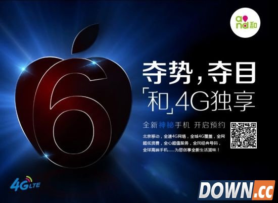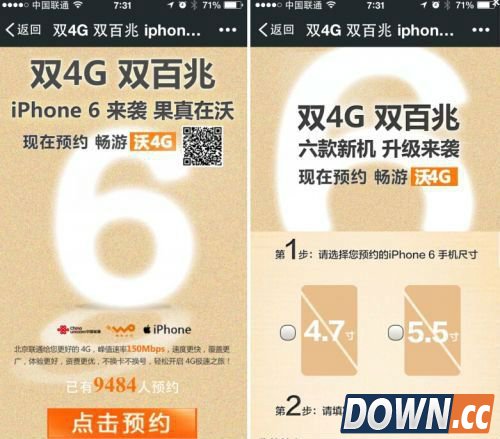 同一天,中国联通也推出了iPhone 6的预约,并且在预约的口号中,打出了“双4G、双百兆”的口号,暗示联通FDD/TDD双网的优势。