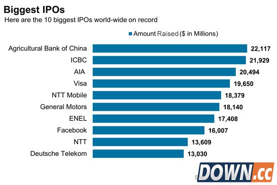 科技和互联网公司数额最大的IPO 阿里巴巴的相对估值与其他公司的对比: PE Price/Earnings 市盈率(静态): 阿里巴巴: 32倍 腾讯:47倍 PS 市销率(静态): 阿里巴巴:17倍 腾讯:13.5倍 百度:12.2倍 亚马逊:1.96倍 eBay: 3.92倍 投资者都是根据数据和盈利的预期投资,阿里向投资人保证的PE是24倍,前提是一直维持盈利的高速增长。