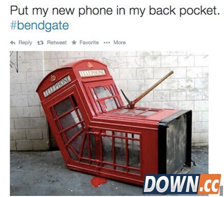 来自伦敦的网友真不客气,反讽的电话亭加上神吐槽:“iPhone 6 plus是历史上一个迁就你的裤兜的智能手机。”