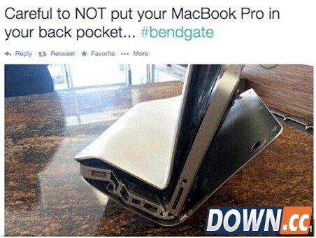 会弯曲的不仅是iPhone 6 plus哦,小心你放在背包里的Macbook Pro。(Twitter用户,来自北卡的Shaun Moynihan)