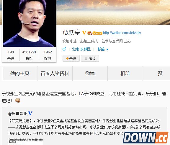 据《好莱坞报道》,乐视斥资2亿美元在美国设立子公司。该消息得到了乐视网董事长兼CEO贾跃亭的证实,其在微博上表示,“乐视影业2亿美元战略基金建立美国基地,LA子公司成立,北洛硅线日趋完善,乐乐们,奋进吧!”