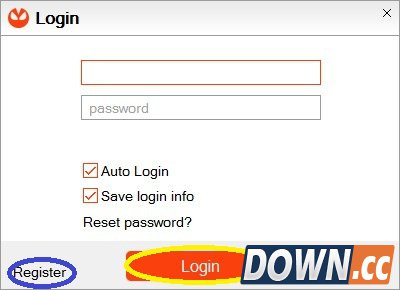 安装完后,打开盒子,会自动更新。更新完后登录,没账号的点击蓝色圈圈里的注册,有帐号的输完帐号密码后,点击黄色圈圈的登录