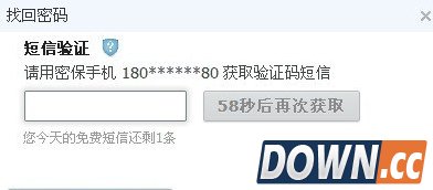 3、点击验证密保找回密码,用手机短信验证