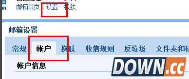 1、首先登录我们的QQ邮箱,点击设置按钮,切换到账户选项卡,如图所示: