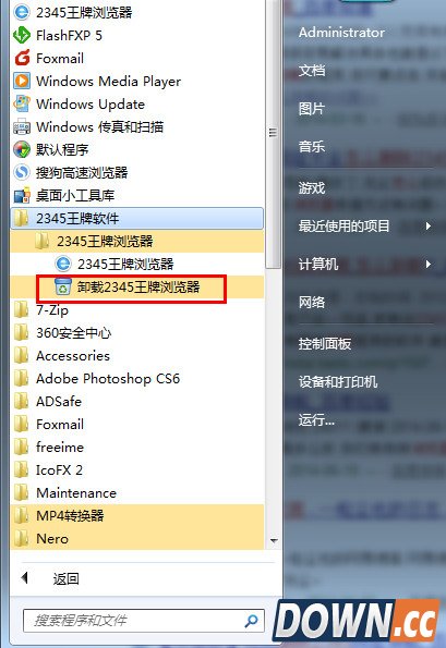 方法二:开始菜单中找到2345王牌浏览器文件夹===卸载2345王牌浏览器