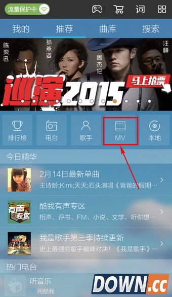 1.进入手机酷我音乐,选择【MV】