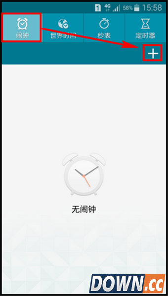 3.点击【闹钟】,然后点击【+】图标,创建一个新的闹钟。