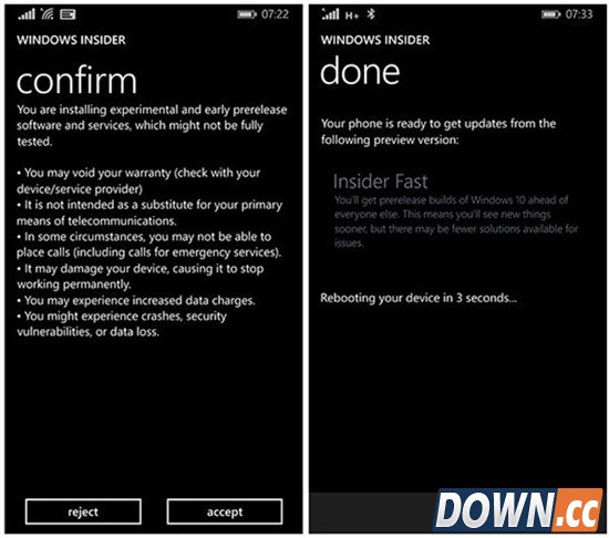 ▲接受协议之后,用户就算真正有资格可以获取Win10手机预览版更新,不过需要注意的是,本次Win10手机预览版十分不完善,请三思而后更新。