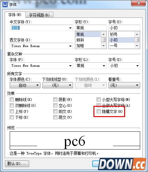 3、在字体中==勾“选隐藏文字”