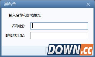 3、点击了添加按钮之后,会有黑名单选项,我们要做的是输入要设置为黑名单的名称和邮箱地址,最后按确认即可