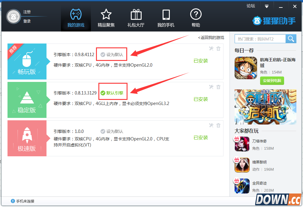 2、进入引擎管理界面后,选择下图两个引擎(稳定版、畅玩版)进行安装(已经安装的则跳过这一步):