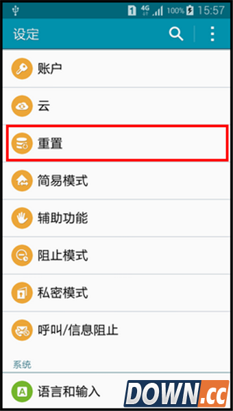3.向上滑动屏幕,点击【重置】。