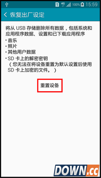 5.点击【重置设备】。
