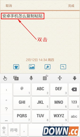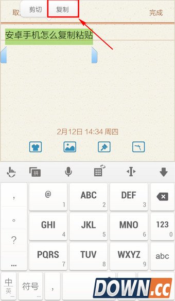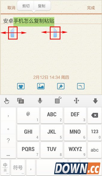 Android智能操作系统就像我们PC上使用的Windows一样,复制粘贴是相当基础的功能,不过如果你初次使用Android操作系统手机,还不知道怎么复制粘贴,也不为过,毕竟什么都有个学习的过程! 以手机便签为例,输入一段文字 1.复制: 1)双击输入的文字,系统会自动选择一部分,并弹出选项