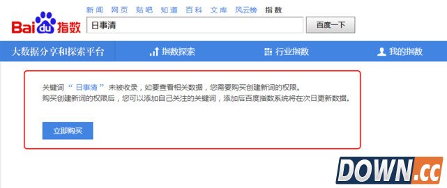 百度指数相信是所有做编辑的人最关注的东西,那么大家知道百度指数什么怎么看的么?下面小编就为大家介绍一下百度指数怎么看,希望能帮到大家 1、在使用百度指数之前,我们一般心中已经有确切想要搜索的词汇了。以我需要搜的“日事清”为例,大家可以看到下图所示。“日事清”没有被收录,如要查看相关数据,您需要购买创建新词的权限
