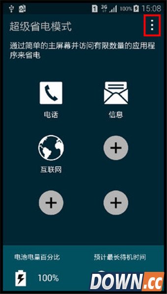 1.在超级省电模式下,点击屏幕右上角的【菜单】键。