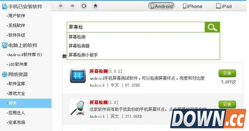 第三步:iPhone推荐使用壁纸方法检测,省的麻烦(其实也挺麻烦的)。安卓手机则在安卓市场搜索屏幕检测 搜索一个检测软件,下载。最好保存到手机中。如果你是买回来再检测,储存到哪都没关系,只要准备好上述条件即可,在电脑中准备好即可。