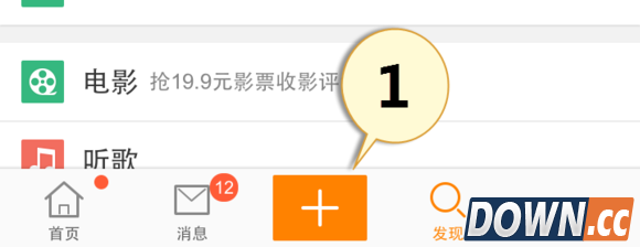 微博发送 打开手机微博,点击中间的【+】图标。