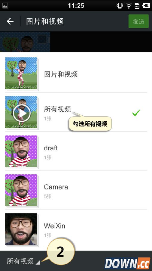 勾选自己想要发送的逗拍视频