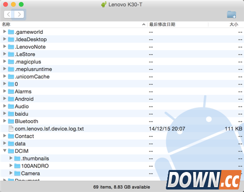 虽然很简单的界面,但是功能实在,齐全。我们可以通过拖拽的方式进行文件操作,也可以建立文件夹等等,十分方便。 除此之前,我们还可以考虑第三方的软件,比如魔方、豌豆荚Web版本。而暂时,Android File Transfer足够了。