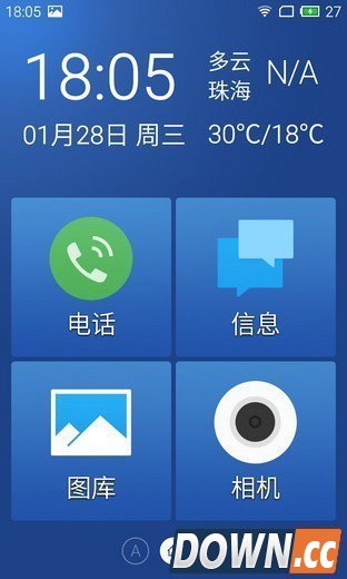 魅蓝手机的屏幕尺寸减小为5英寸(魅蓝Note是5.5英寸),分辨率也由全高清降低到1280*768的水准。不过即使这样魅蓝手机屏幕的ppi仍然达到了300符合视网膜屏幕的最低限度,事实上5英寸720p的这一套组合经过市场的检验被认为是十分成熟的一套方案,而通过实际使用来看,它们的显示效果差异并不大。 UI:Flyme 4.2.1加入新特性 魅蓝手机内置的是最新的Flyme 4.2.1,发布会上对这一版本新增加的一些功能也做了介绍,下面一起来看看。