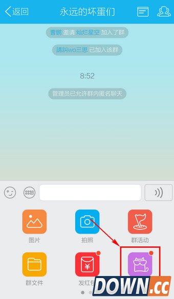 5.回到群聊界面,点击输入框左侧的【更多】标志