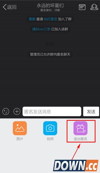 7.进入匿名聊天模式,界面变为黑底,可随时退出匿名聊天模式