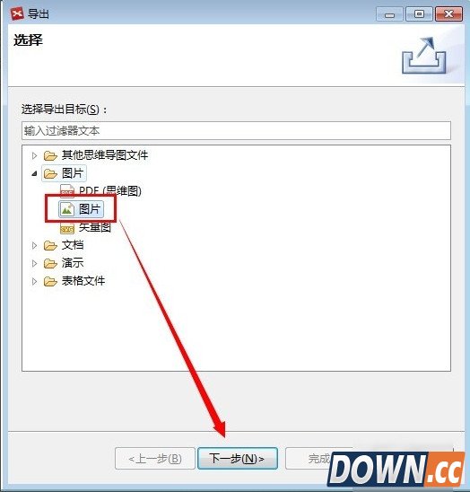 4、进入导出选择,免费版本只有“图片”保存功能,因此我们选择图片后,点击“下一步”