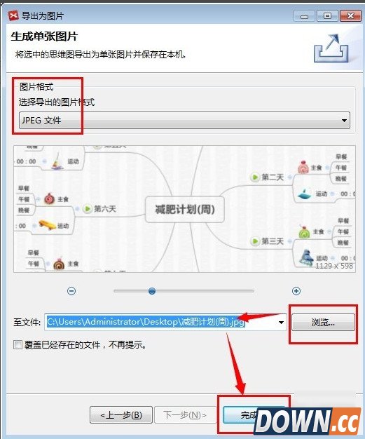 5、图片属性,先选择图片格式,然后再选择图片存放地址,确认后,下一步即可保存成功。