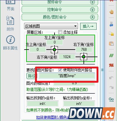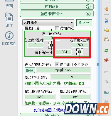 9、然后选择找图的区域,如果需要在整个屏幕找图,需要将上面的数值设为电脑的分辨率,如果只需要在一个区域内找图,可以用【抓抓】确定区域坐标