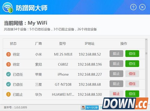 无意间看到了“防蹭网大师”这个软件,试用了一下,大为满意。而网上看到的一些教程,都比较粗糙,一些很贴心的技巧并为涉猎。小编这里给大家介绍一下 防蹭网大师实用技巧: 防蹭网大师的基本使用非常简单。打开软件后机会自动扫描连网设备,一般1~2分钟就能扫描到所有在线的设备。根据设备的厂商、型号,很容易就可以判断出来哪些是蹭网的,哪些是自己家的。对于那些蹭网的设备,一定要果断地阻止,后面的事情就交给防蹭网大师了。据小编拿自己的手机测试,阻止之后就可以高枕无忧了。只要电脑开着(重启也没有关系),被阻止的设备就再也不能上网