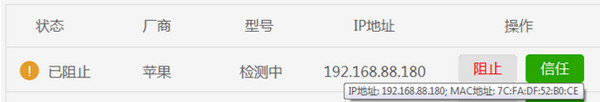 小技巧四:查看MAC地址 这项技能仅适合那些装B技术宅,一般人哪里懂什么MAC地址呀。好像这个也是最新版本1.0.0.1008才加进来的。这个超级简单,只要把鼠标移动到IP地址的上面,就可以看到那个设备的MAC地址喽:
