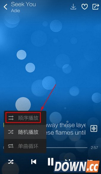 3.目前为【随机播放】,选择【顺序播放】