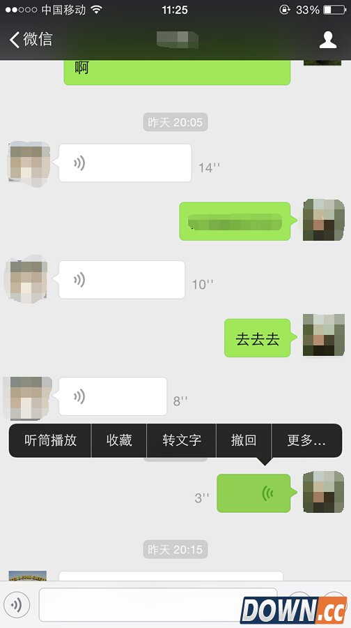 功能很强大有木有,难怪现在玩微信的多过qq,微信语音也是大家经常使用的一个功能,并且如果你在公众场合听不到声音的话还可以将语音转换成文字。下面小编来教大家转换方法。 首先打开微信选择一位好友的语音消息,长按语音消息,点击转化为文字。