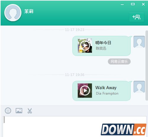 电脑版的易信可以同步在手机上的聊天记录,图中与朋友分享的歌曲是在手机上做的