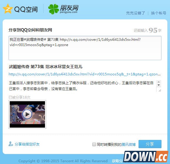 3、选择你要分享的空间或者微博选项,点击分享如果当前你没有登录,那么你要先登录帐号就可以分享成功了