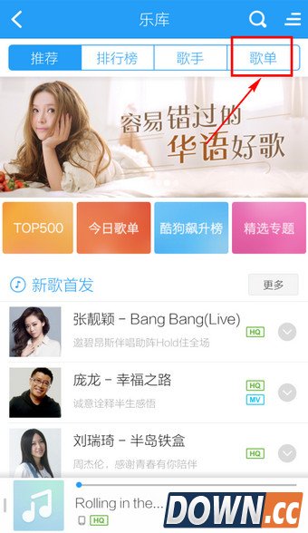 2.比如选择【歌单】