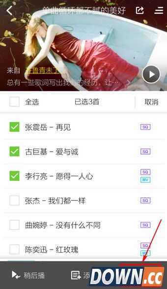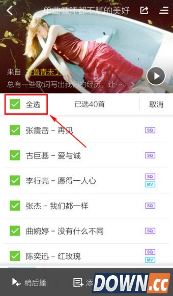 5.选择【全选】或勾选若干单曲